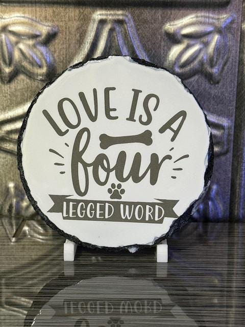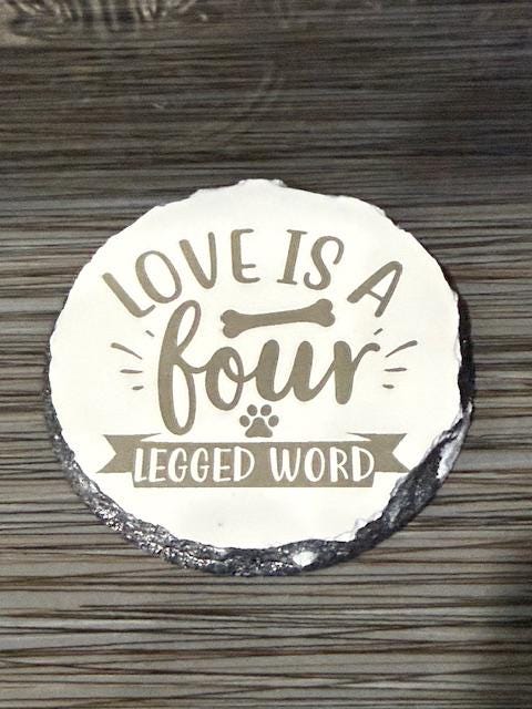 Luve is a four legged word Slate Coaster. For the dog lover!