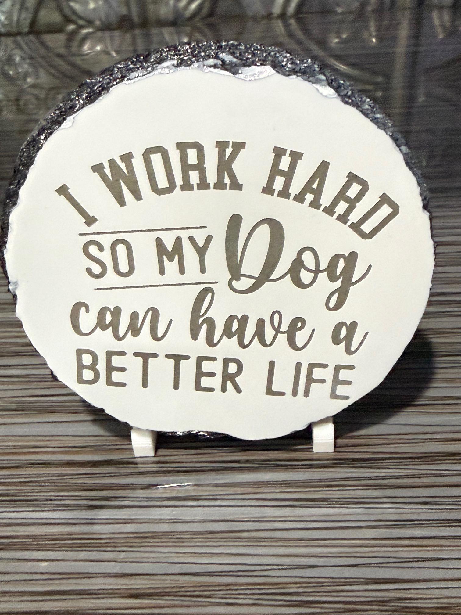 For every dog owner who knows exactly why they work so hard, this “I Work Hard So My Dog Can Have A Better Life” drink coaster says it perfectly.