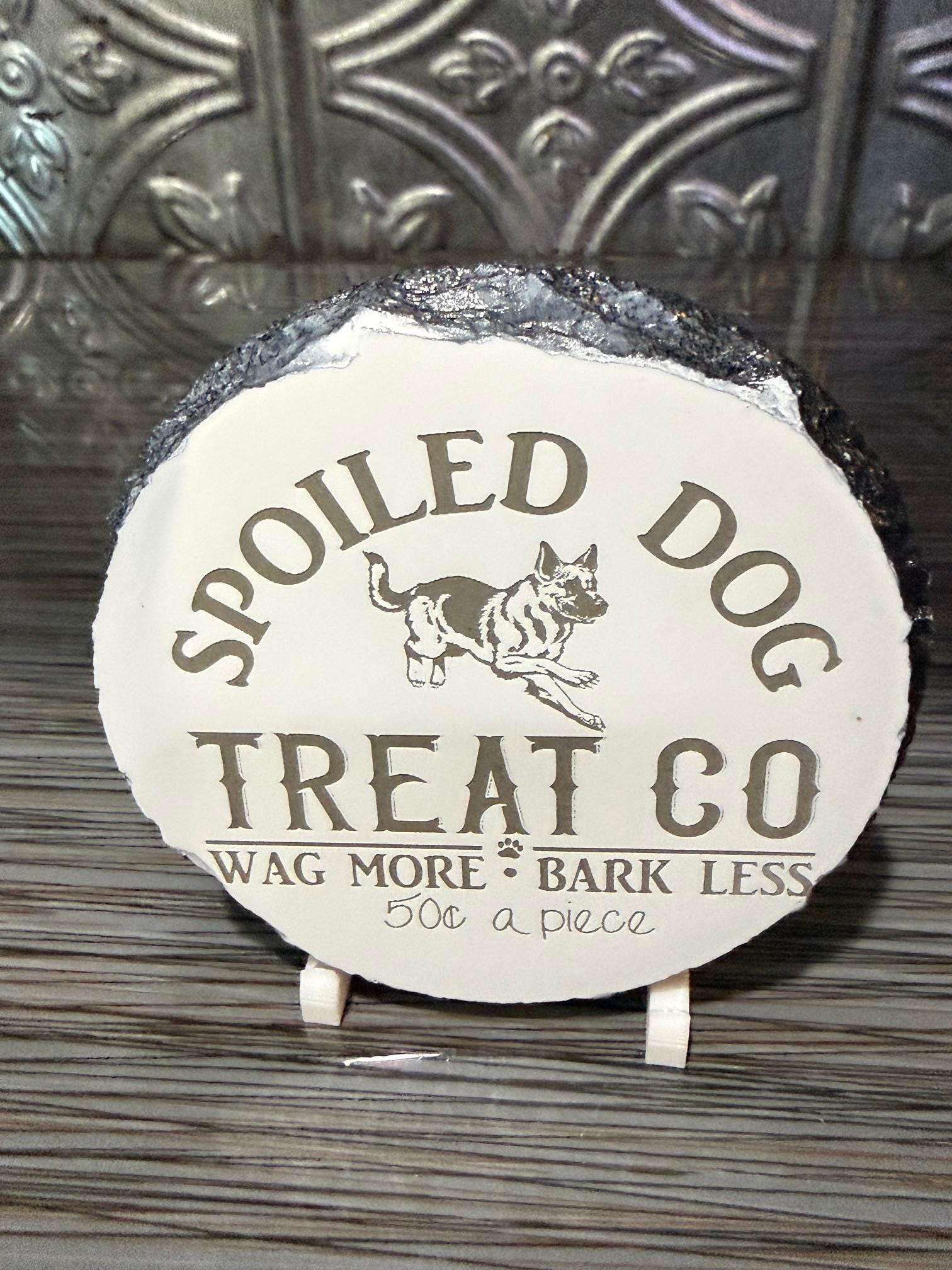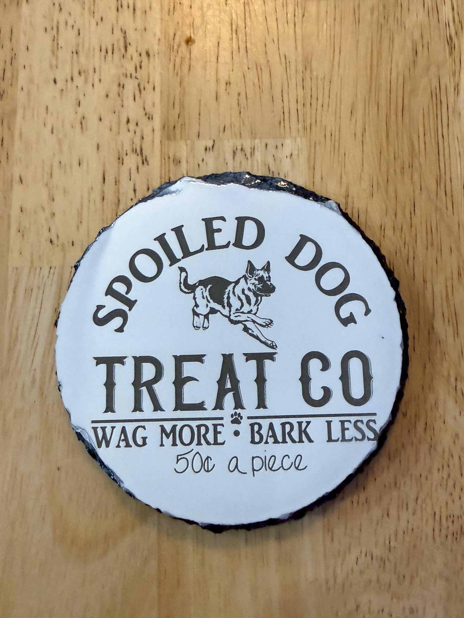 Show off your love for your spoiled pup with this “Spoiled Dog Treat Co” drink coaster. This fun design celebrates the truth every dog owner knows — dogs deserve to be spoiled.