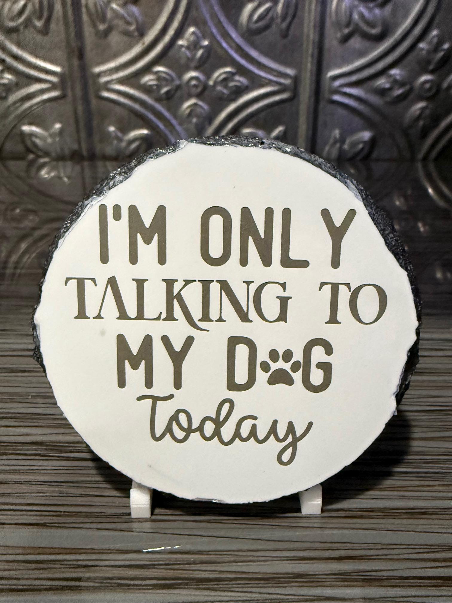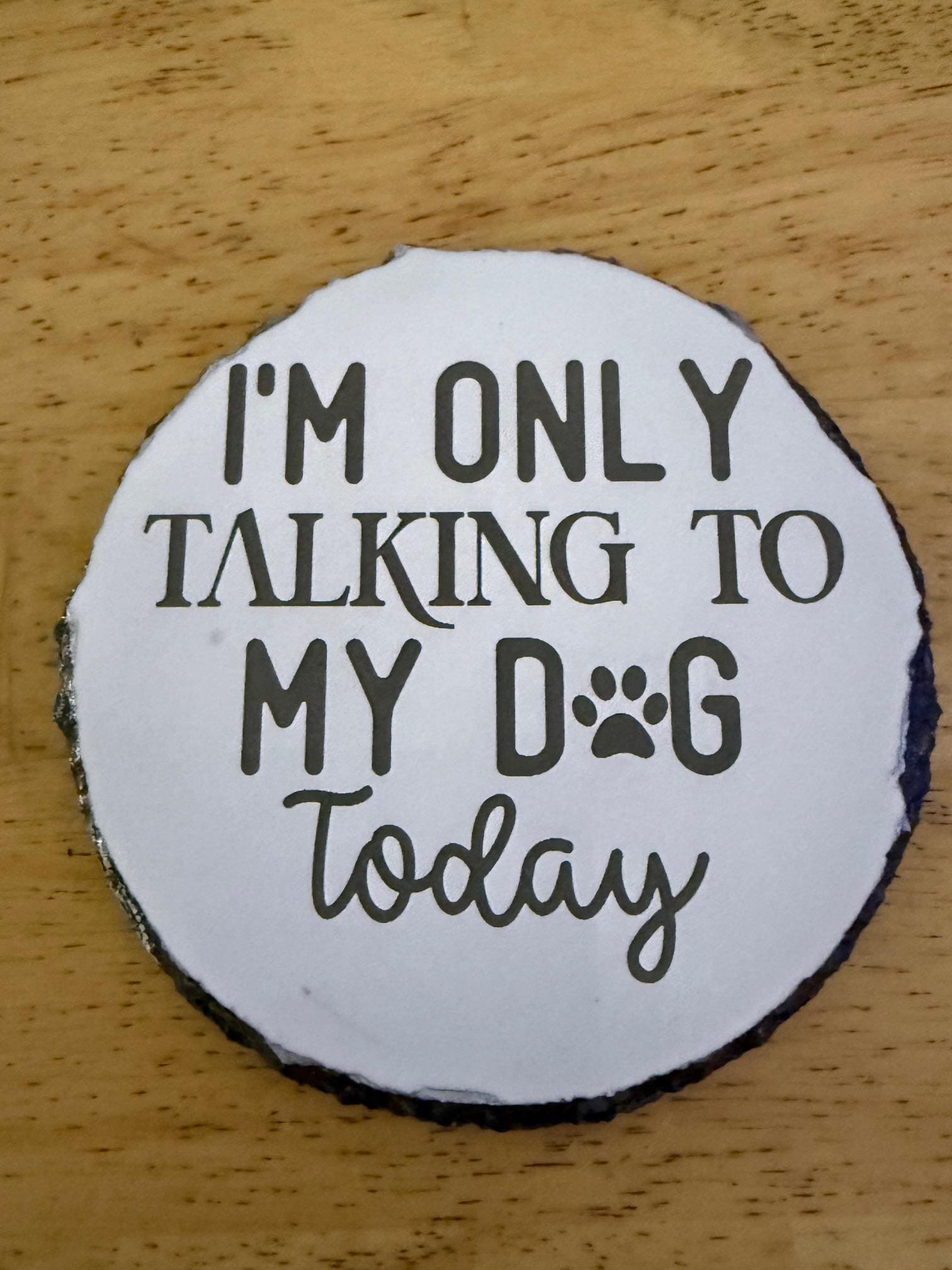 Add some humor to your home with this “I’m Only Talking to My Dog Today” engraved slate coaster. Perfect for dog lovers who know their pup is the best listener.